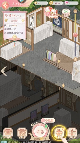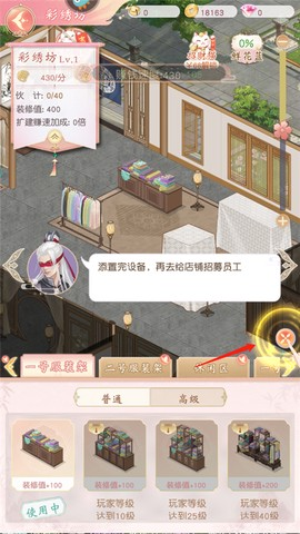 3、新手第一个任务是开彩秀坊,直接点那个亮着的店铺图标就行,别去碰灰着的,那些还没解锁。