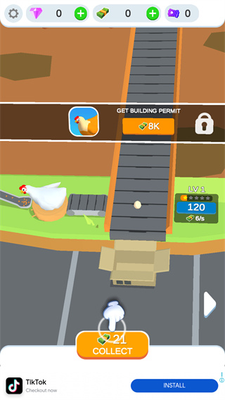 1、开局先收集基础资源,孵化第一批小鸡,等它们开始稳定下蛋,就接入初级加工设备;