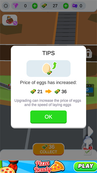 2、每次升级都有肉眼可见的变化——原本一分钟出10个蛋,升级后直接翻倍,反馈感超强;