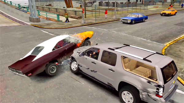 车祸碰撞模拟器(Car Crash)就是让你“合法搞破坏”的沙盒游乐场。你可以开着家用车、超跑甚至老式肌肉车,在各种稀奇古怪的场景里横冲直撞——撞石墙、碾油桶、飞悬崖、砸玻璃,怎么刺激怎么来。不光能体验速度与毁灭的快感,还能进车库调校引擎、加固底盘、换悬挂,把一辆普通小车改造成抗撞怪兽。十种玩法模式轮着上,每一种都像在给物理引擎“找茬”,玩起来既解压又上头。