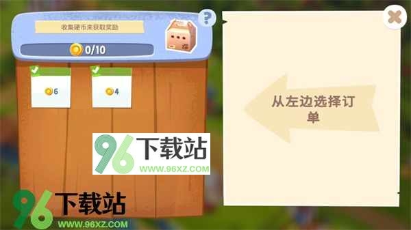 4、注意屏幕左侧出现的订单板,完成里面的各项订单任务后你能够获取丰厚的游戏奖励,还能升级你的农场等级。