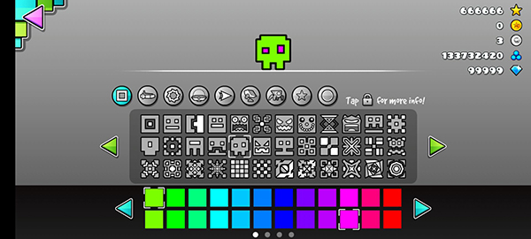 3、通关能解锁新图标、颜色和特效,把你的小方块打扮成赛博朋克风或者极简黑白款,全看喜好。