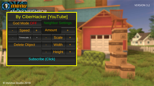 辅助菜单说明: 1、上帝模式(God Mode) 2、速度(Speed)调节 3、时间缩放(Timescale) 4、删除物体(Delete Object) 5、邻居设置(Neighbor Settings)