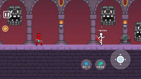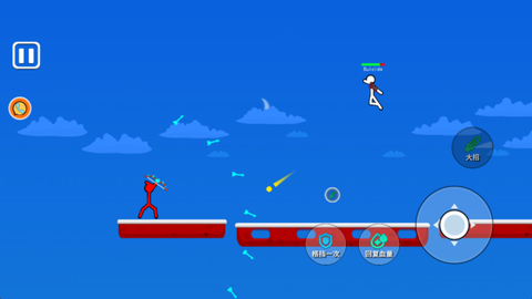 1、屏幕左边有个虚拟摇杆,手指按上去就能控制火柴人前后左右跑动,松手就停,操作特别直接,根本不用琢磨。