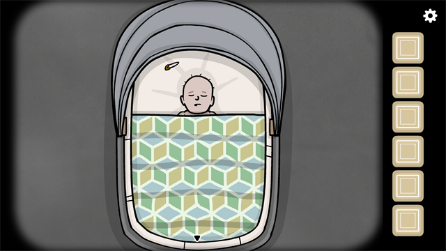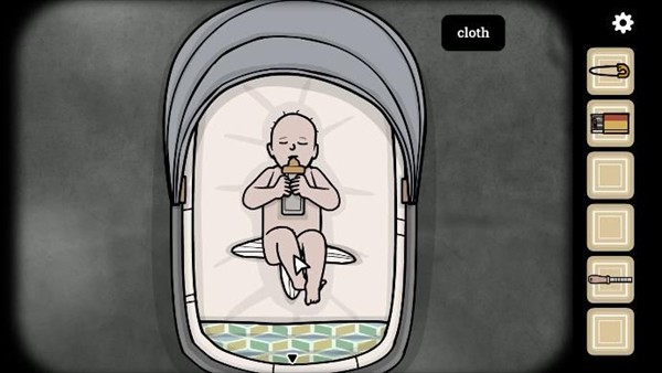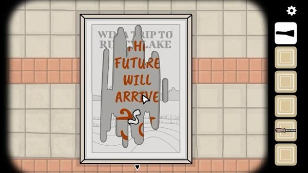 走到婴儿车旁边有海报的墙边,用小铲子刮掉海报表面,底下会显出一行字:“THE FUTURE WILL ARRIVE”,同时底部浮现出一个奇怪的符号。