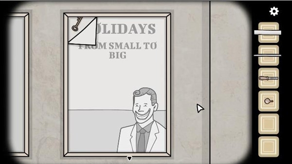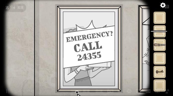 回到母女待着的位置,往右切到另一面墙,那里也有张海报。点开后提示“从小到大”,按这个顺序依次点击图中的物品,完成后海报左上角会弹出一把钥匙。