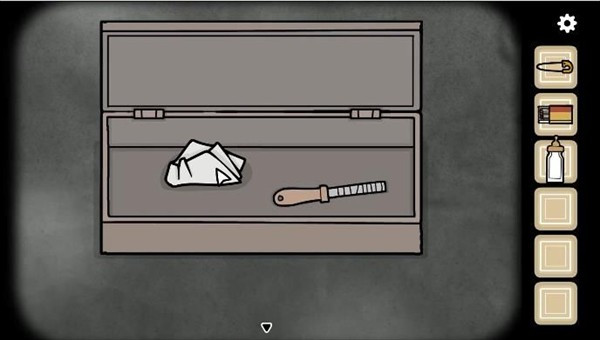 地上有个旅行箱,打开后能拿到一块白布和一把锉刀,这两样东西后面都用得上。