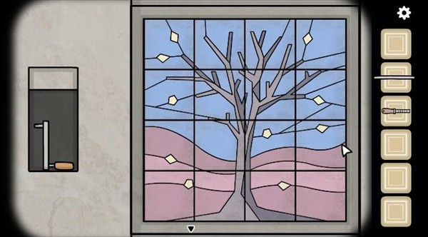 最后一次见面时,她手里多了块拼图碎片。拿回去补到女士身边墙上那幅画的右上角,整幅画拼好后会弹出一个暗格,里面藏着一个把手。