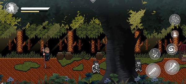三、操作方面用的是虚拟摇杆模式,左边那个摇杆管移动,攻击方向也是靠它来控制的。