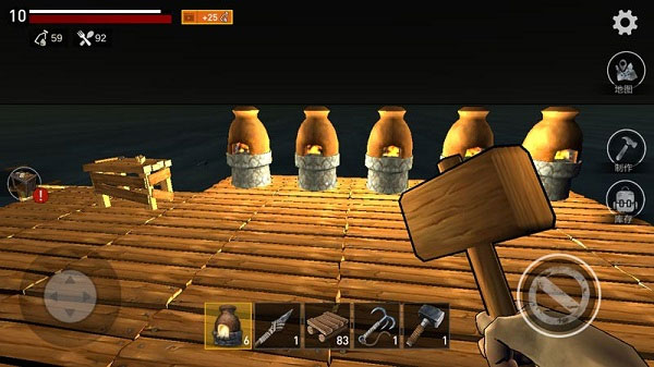 - 食物与水源:钓鱼(点击“Use”抛竿,浮标动后再点“Use”收竿);土豆可在漂流箱中获得,后期用种子箱种植;海水需通过炉具淡化(先用杯子在木筏边缘舀水,再放到炉上转化)。