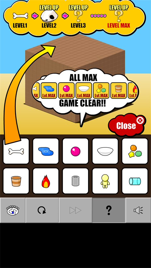 3.游戏目标是探索出正确的顺序,让所有道具都能升级到最高等级。