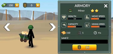 1、玩家要在战场上亲自调度资源,安排火柴人分工协作,一边发展基地一边准备出征。