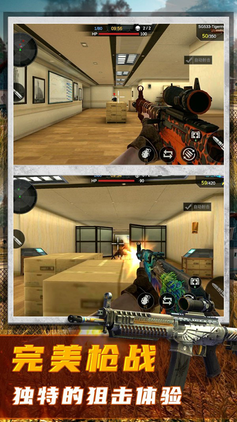 2、通过完成任务逐步解锁M4、AWP、AK等真实枪械,后期武器库丰富,火力持续升级;