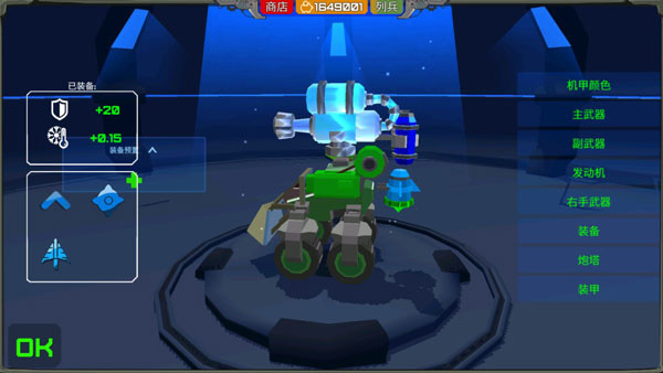 2、机甲改装:在机库中自定义机甲外观与性能——更换主武器(如激光炮/火箭筒)、副武器、炮塔类型、装甲材质、引擎推力及外挂装备,打造独一无二的战斗机器。