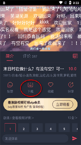 4、找到想要下载缓存的动漫后,点击进入该动漫详情页面,点击页面下方的下载按钮。