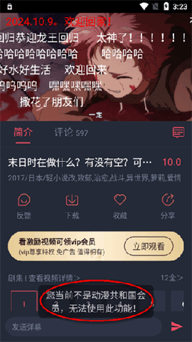 5、需注意,该应用部分动漫下载缓存功能仅会员可用,若想免广告并获取vip权限,可按软件内提示的相关方式进行操作。