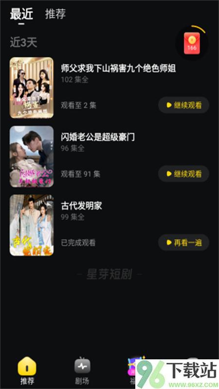 3、首页上一堆推荐短剧,都是最近热度高的,随便点一个封面就能开始播放。