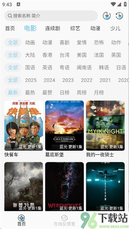 首页按类型分好了电影、电视剧、综艺和动漫,还能进一步按年份、地区、热度来挑片子。