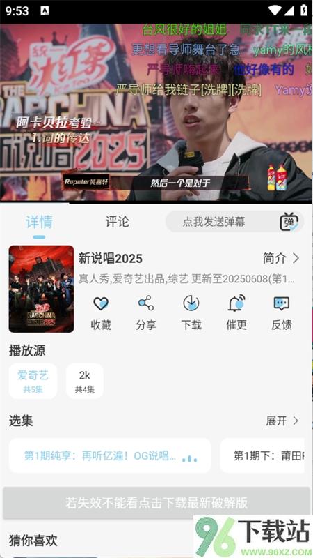 4、选中目标影片进入播放页面后,可以切换清晰度、选集数,还能点击下载按钮存本地。