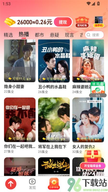 3、首页全是热门短剧推荐,按分类排好了,都市、甜宠、悬疑、重生什么题材都有,滑两下滑就能找到想看的。