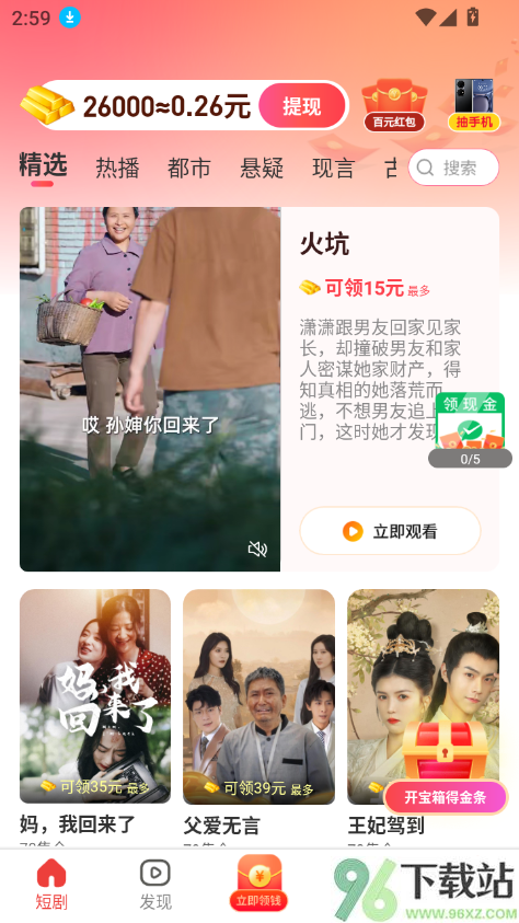 4、进入“发现”页面后会自动推送当前热门的短剧内容,上下滑动就能快速切换不同剧集,适合不想费脑挑剧的时候。