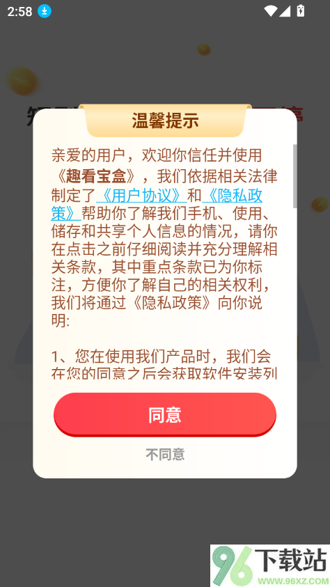 1、先去96下载站把趣看宝盒app安卓版下载安装好,打开后按提示允许必要的权限,就能直接进首页开始使用。