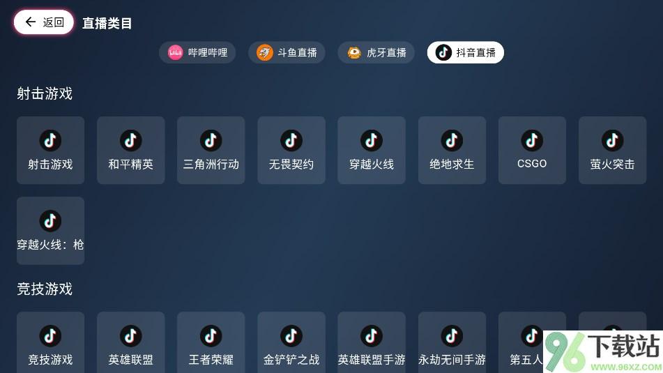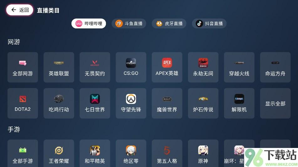 3、进入主界面后选择“直播”分类,在顶部就能切换不同的平台,比如想看B站就点B站,想刷抖音直播就选抖音。