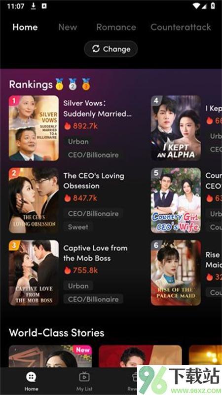 2、打开App后主页面会直接展示当前最热门和最新上线的短剧推荐,滑动屏幕就能浏览不同的分类专区。