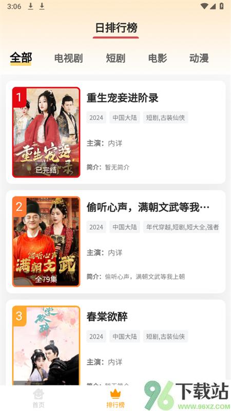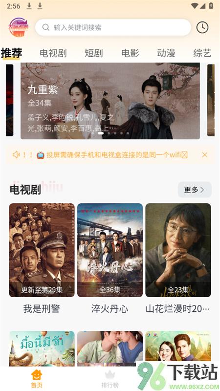 1、先从96下载站把大喵追剧app下载下来,安装的时候允许手机信任这个来源,装好直接点开就行,不用填手机号也不用验证码。