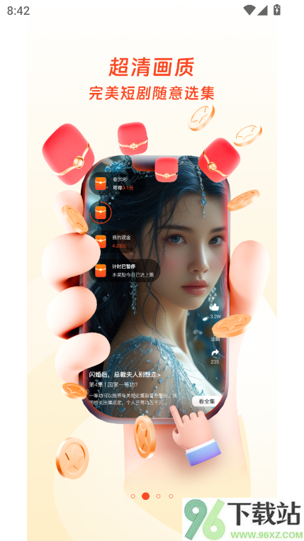 3、进入播放页面后,点击右上角的红包图标,完成页面停留任务就能领取对应金币,积累后可兑换现金红包。