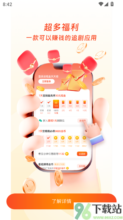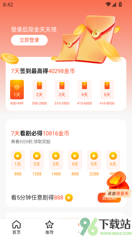 4、每天记得去福利中心签到,连续签到奖励更丰厚,同时看剧达到一定时长也会额外赠送金币和抽奖机会。