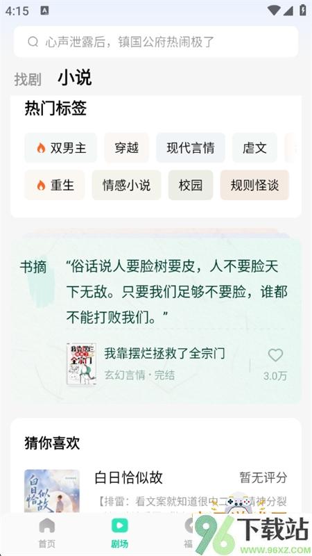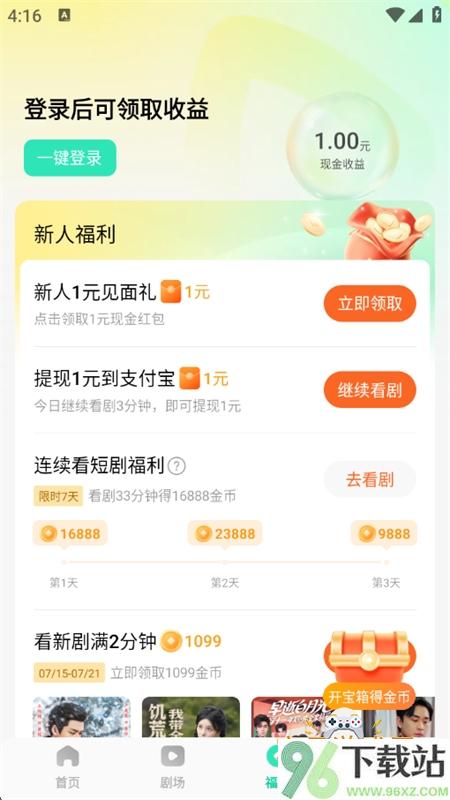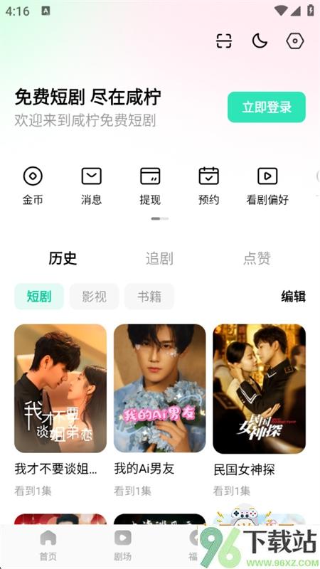 1、先去96下载站找到咸柠免费短剧app的安装包,下载完成以后点开安装,同意相关权限和用户协议后就能进入主界面开始使用。
