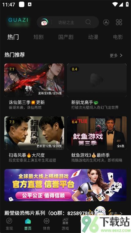 1、先去96下载站找到瓜子影视的安装包,下载后打开文件完成安装并启动应用。