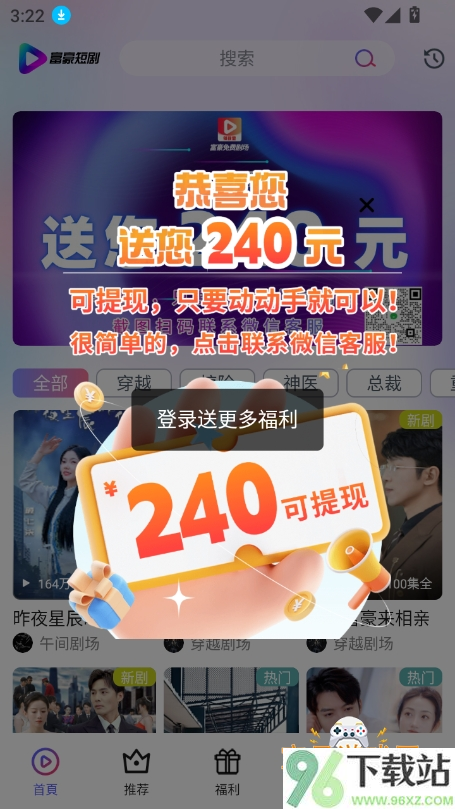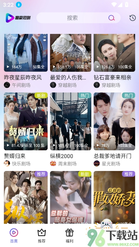 1、打开富豪短剧app后先看看首页的推荐位,热门新剧都在这儿,滑两下就能找到当下最火的短剧。