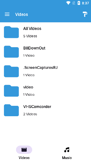 2、安装完成后打开应用,首页会自动扫描你手机里存的视频文件,按时间或大小排序都能查。