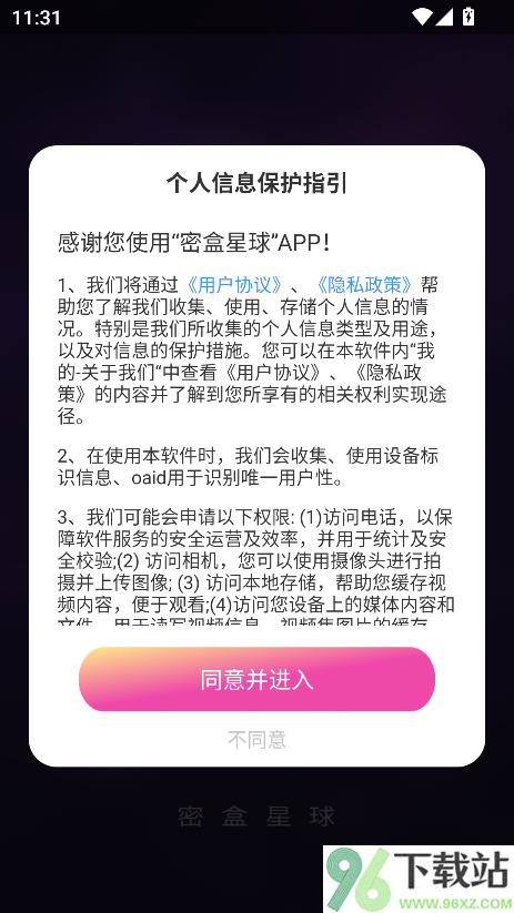 1、先在96下载站下载密盒星球app,安装完成后打开程序,别从乱七八糟的链接点,小心假版本。