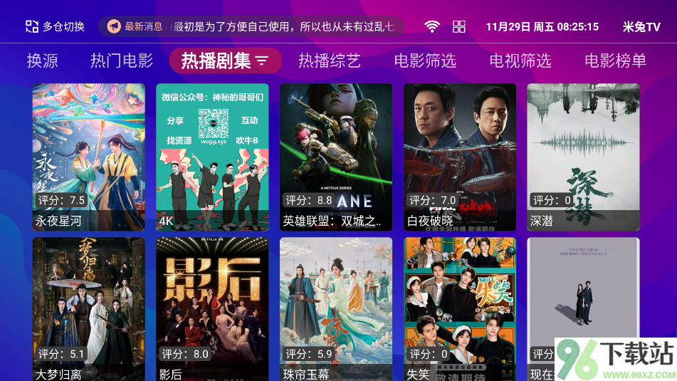米兔TV电视版是一款专为智能电视或盒子设计的免费视频应用,2025年最新版在稳定性和资源更新上做了优化,它整合了大量影视剧、综艺节目和电视频道,内容覆盖全面,既有热门新剧,也有经典老片,还能收看央视、卫视等直播频道,基本满足全家人的观看需求,操作上非常简单,界面清爽,分类清晰,电影、电视剧、综艺、动漫等一目了然,老人也能轻松上手,支持关键词搜索,想找什么节目输入就能快速定位,播放过程中如果遇到卡顿或片源失效,可以点击左上角“换源”按钮,从多个备用线路中切换,加载后就能继续观看,体验流畅,App会自动记录观看历史,下次打开直接接着看,不用重新找进度,画质清晰,加载速度快,没有烦人的广告弹窗,整体不收费、不强制登录,装上就能用,适合想用大屏追剧、看直播又不想折腾复杂设置的家庭用户。