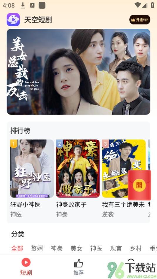 1、打开天空短剧app后直接在首页浏览推荐内容,无需登录就能开始观看。