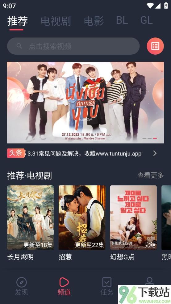 1、打开豚豚剧后直接在首页浏览推荐内容,热门影视剧一目了然,随便点进去就能开始播放。