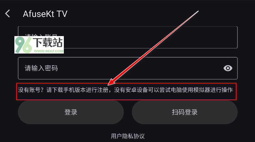 1.打开AfuseKtV,可以看到需要下载手机版本才可以进行注册。
