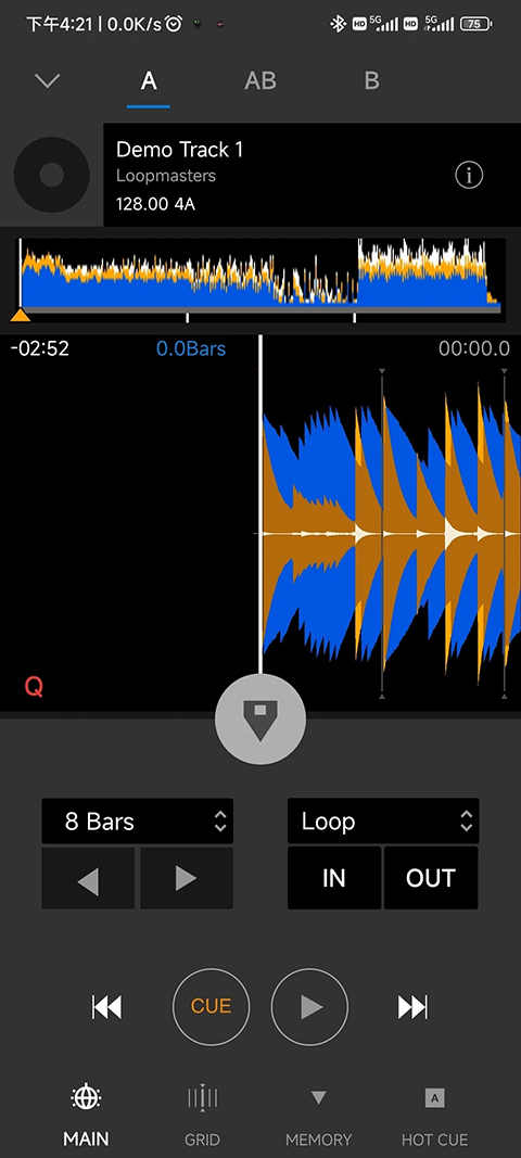 3、想设Cue听歌时直接滑屏幕左存Memory右存Hot,点波形保存实时Memory,播放不停操作顺手。