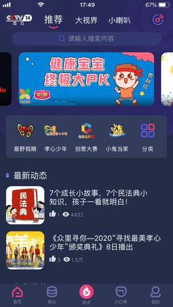 2、少儿频道热门栏目互动通道,报名录制、看幕后直播、上传孩子作品参与讨论。