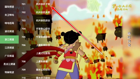 3、点击任意一个具体频道,比如“杭州余杭平安”,节目立即开始播放,切换过程非常顺滑,基本不会有转圈加载的情况出现。