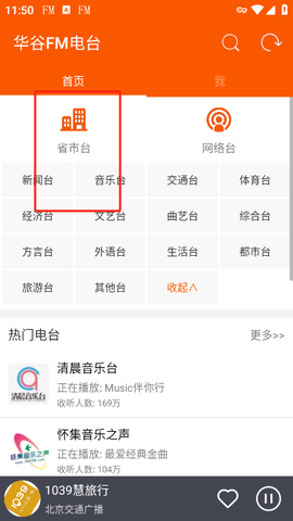 1、在华谷FM电台App里怎么快速找到长沙本地的广播?