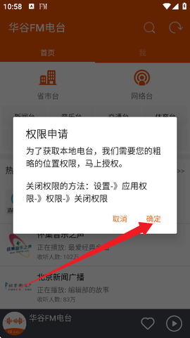 2、进入应用后需要允许麦克风、网络和位置等权限,这些是为了让你听得更顺畅、推荐更准,别直接拒绝。