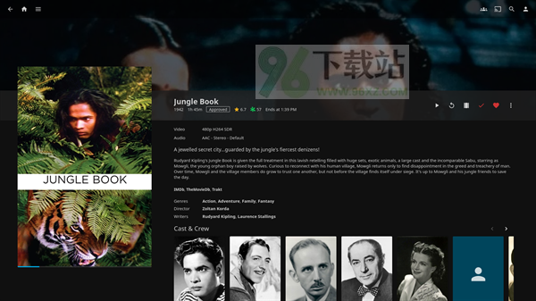 点进任意影片,能看到完整的元数据:导演、演员、剧情简介、IMDb评分,甚至幕后花絮(如果本地有存放)。