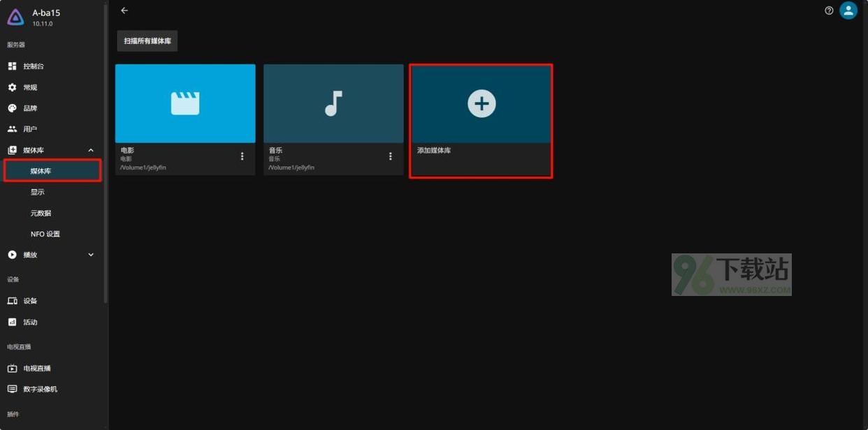 在左侧边栏找到“媒体库”,点击右上角的“添加媒体库”按钮