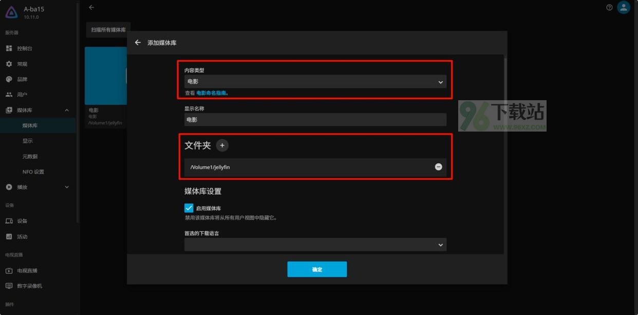 先选类型——是电影、电视剧还是音乐?然后起个名字(比如“华语经典”或“宝宝动画”),再指定文件夹路径。高级选项里还能选元数据来源(如TheMovieDb)、封面保存位置等,确认后点“确定”