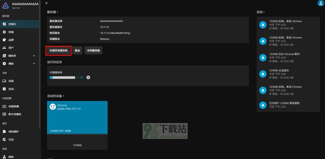 设置完成后,系统会自动扫描文件并联网补全信息。你也可以手动点“扫描所有媒体库”立刻刷新,不用干等。