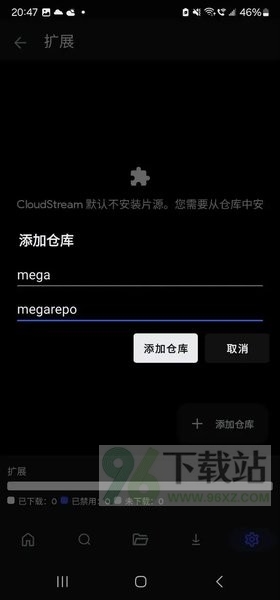 加完之后,回到扩展列表,找到名字带“mega”的那一项,点下载。等它同步完一堆子仓库,再切回主界面。